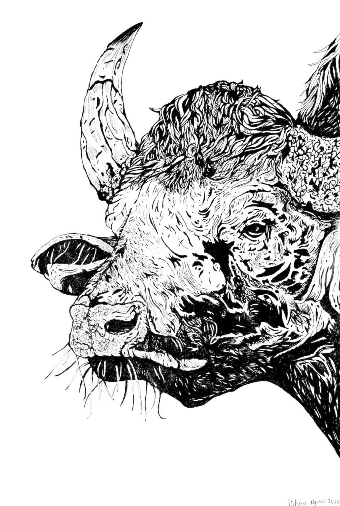 Matthew R. Frame uniquely portrays Indian wildlife in pen. His illustrations are an abstract take on his subject’s form.